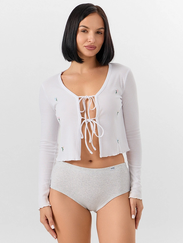 Ластовица из кулирной глади заботится о нежной коже, а эластичный верхний край мягко фиксирует трусики без дискомфорта. Состав с преобладанием хлопка обеспечивает воздухообмен и гипоаллергенность, а эластан сохраняет форму. Универсальный серый цвет и лаконичный дизайн делают эти трусы идеальными для повседневной носки. Они подчеркнут вашу естественную красоту, оставаясь практичным выбором для работы, отдыха или сна.